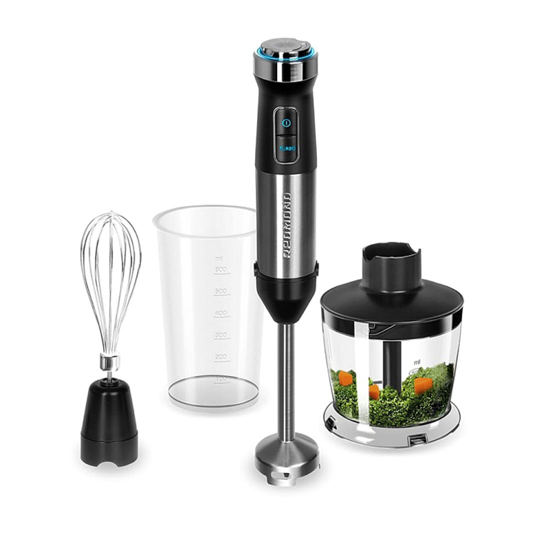– многофункциональное устройство «3 в 1» для быстрого взбивания, смешивания и измельчения продуктов. С помощью одного прибора вы сможете готовить смузи, коктейли и крем-супы, взбивать сливки и яйца, нарезать овощи, мясо и другие ингредиенты для самых разных блюд.