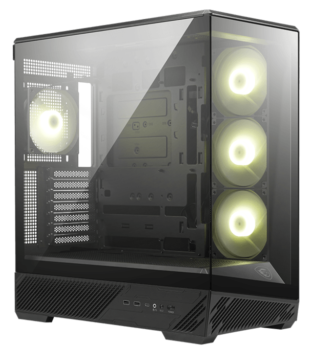 Чтобы удовлетворить желание продемонстрировать собранный ПК с ARGB-подсветкой, серия MAG PANO 130R оснащена панорамным дисплеем на 270 градусов, что повышает эстетику и сохраняет лаконичный дизайн.