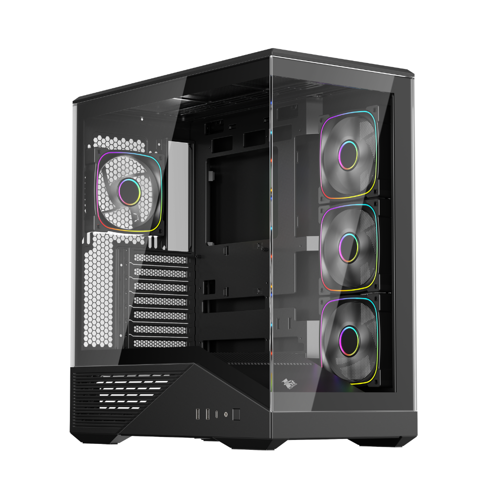 Благодаря обзору интерьера на 270 градусов эта большая панель из закаленного стекла позволяет демонстрировать конструкцию ПК под разными углами.