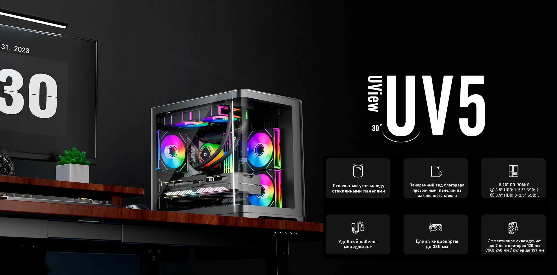 Корпус 1stPlayer UV5 (UV5-WH-2FC7R-W-1FC7-W) [Mini Tower, без вентиляторов, белый]