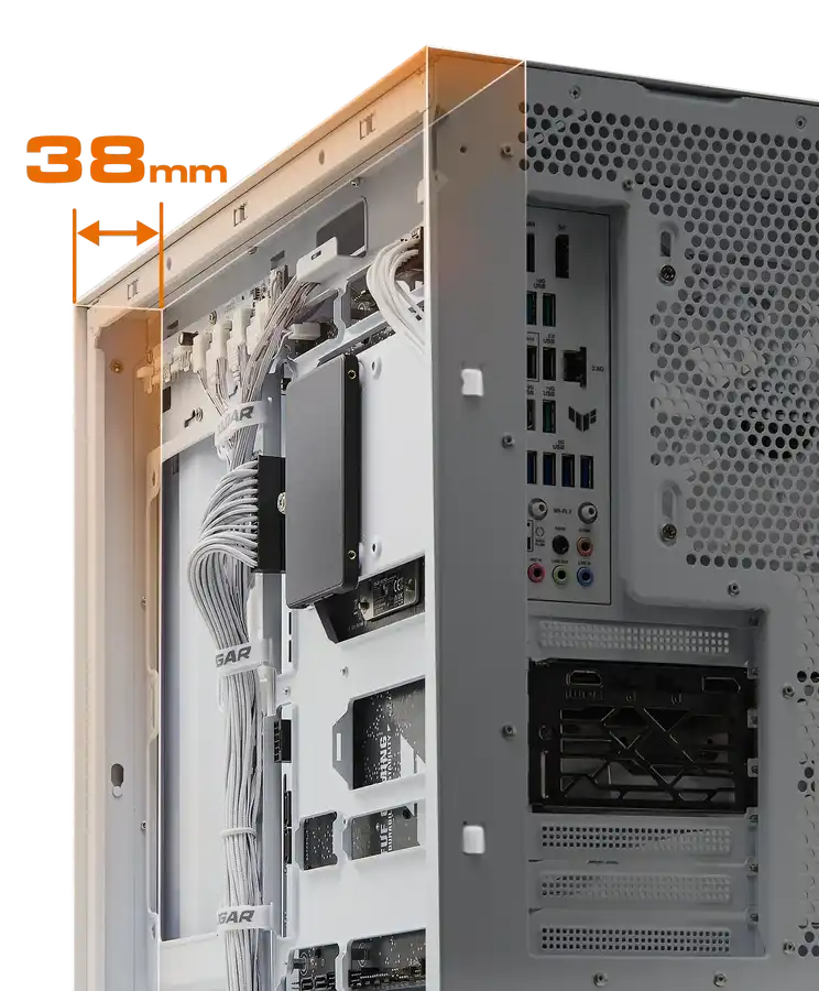 На материнской плате предустановлены однорамные вентиляторы COUGAR Unity ARGB 240 с ШИМ-управлением и обратными лопастями, обеспечивающие точное управление скоростью вращения, исключительное охлаждение, практически бесшумную работу и потрясающую RGB-подсветку прямо из коробки.