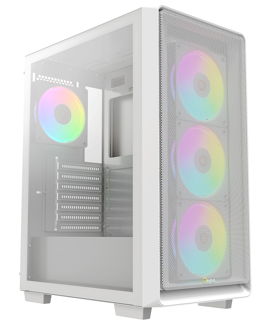 Оснащен четырьмя 120-мм ARGB- вентиляторами спереди и сзади.