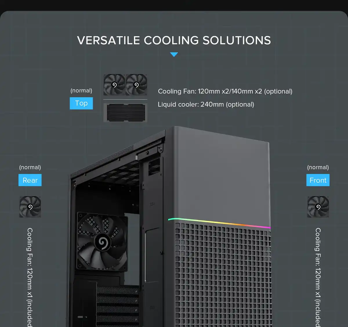 Корпус обеспечивает эффективное использование внутреннего пространства, позволяя устанавливать компактные видеокарты, процессорные системы охлаждения воздушного типа и накопители стандартных форматов. Продуманная компоновка облегчает сборку и обслуживание системы, а предусмотренные места для вентиляторов способствуют стабильной циркуляции воздуха и поддержанию оптимального температурного режима даже при умеренных нагрузках.
