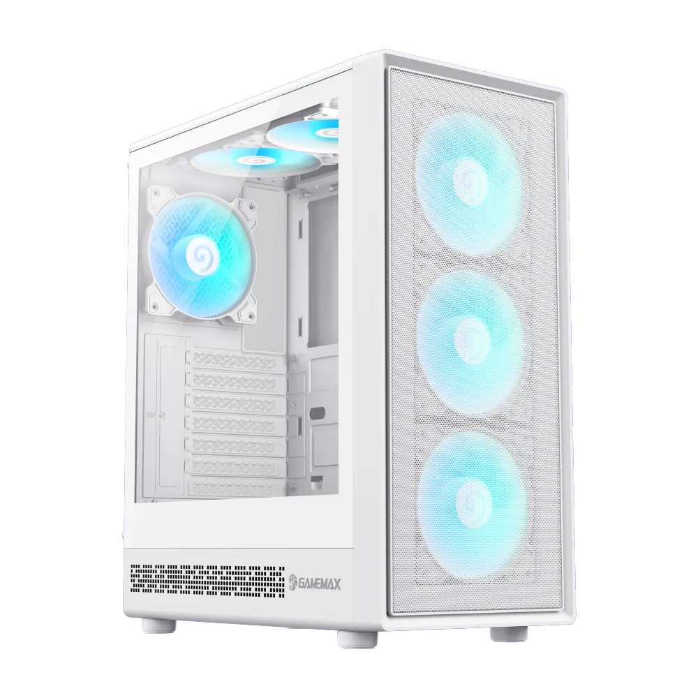 Современный корпус форм‑фактора Middle Tower, сочетает стильный белый дизайн с продуманной функциональностью для игровых и рабочих ПК. Светлое исполнение корпуса подчёркивает аккуратный внешний вид сборки и выгодно выделяет компоненты, особенно с подсветкой, создавая эффектную визуальную композицию.