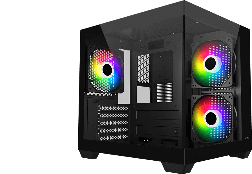 Корпус S140 оснащен тремя 120-мм ARGB-вентиляторами, а сбоку расположены два 120-мм ARGB-вентилятора с обратной подсветкой. S140 поддерживает материнские платы Mini-ITX или некоторые Micro ATX (uATX 244x185 мм) .