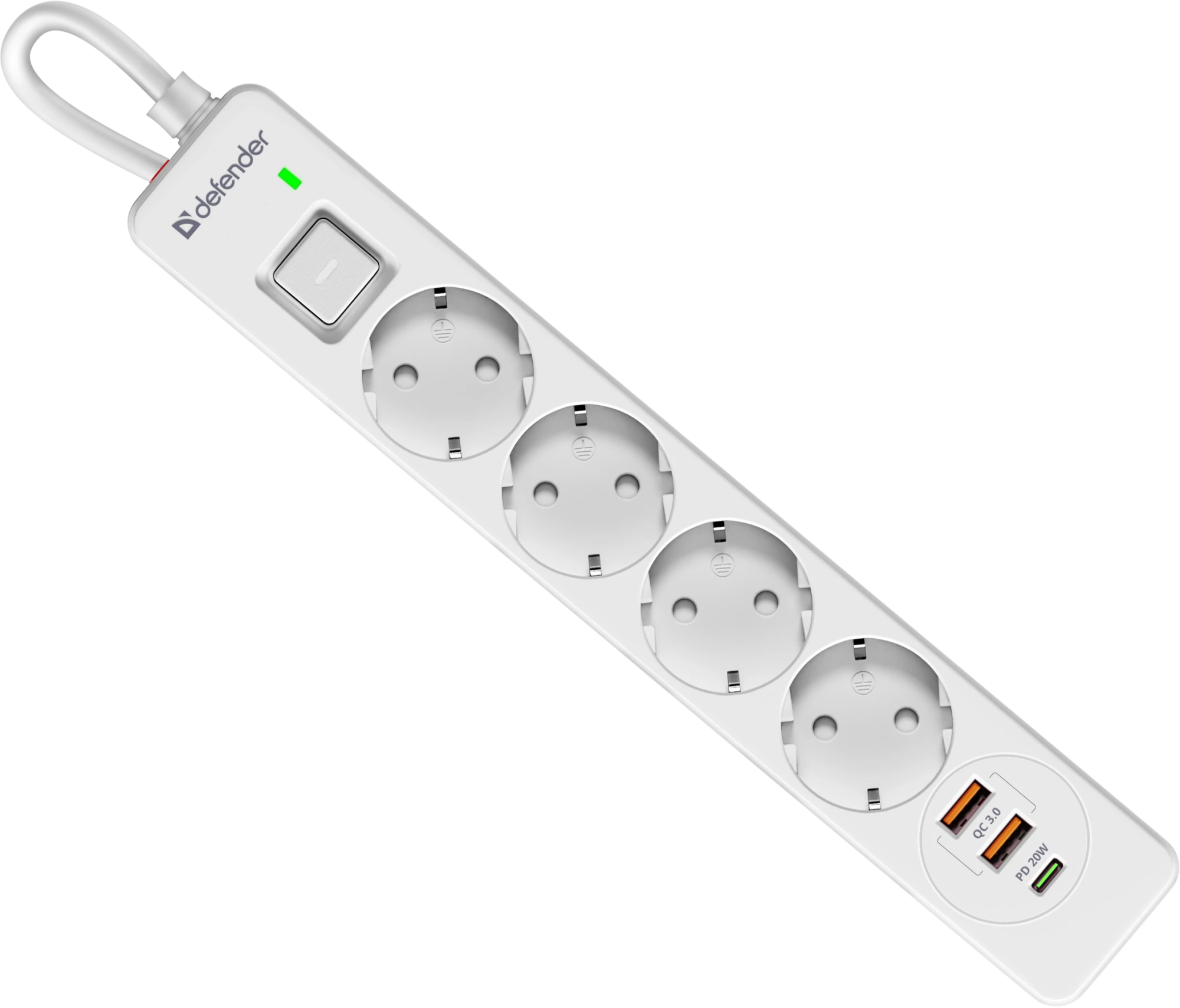 Сетевой фильтр Defender DFS 141 - 1,5 М, 4 розеток, 2xUSB, 1xType-C, белый
