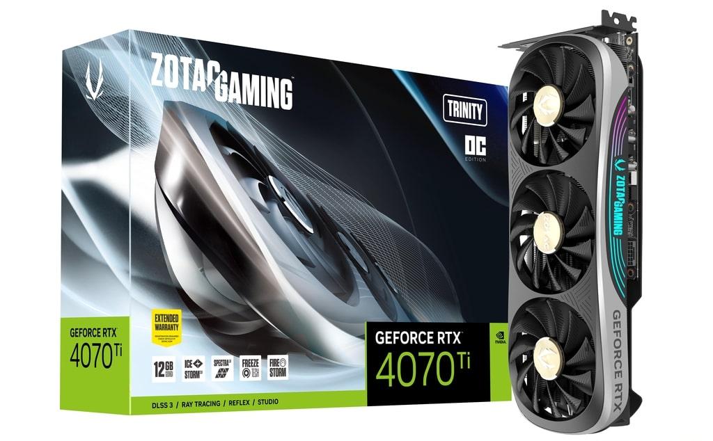 Видеокарта ZOTAC GAMING RTX 4070 Ti Trinity (OC ZT-D40710J-10P) [12 ГБ, GDDR6X, 192 бит, 2625 МГц, HDMI, DisplayPort (3 шт)]