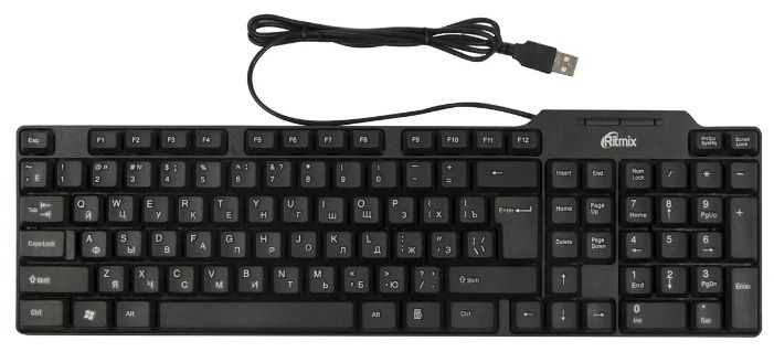 KeyBoard USB, Ritmix RKB-111, 102 keys, rus/lat, black