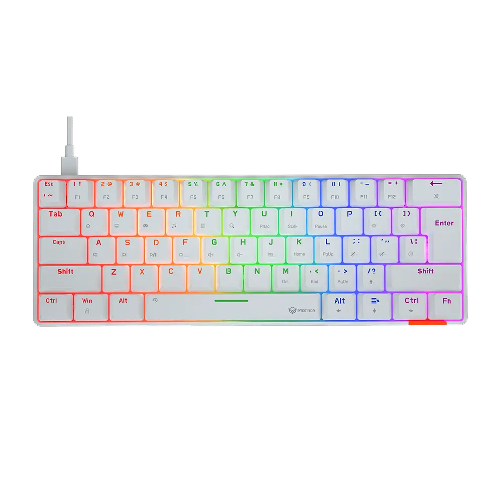 Клавиатура USB, Meetion MK005, Белый KeyBoard Mechanical, Blue switch, 61 keys EN/RU/KZ, Cable USB-C, White