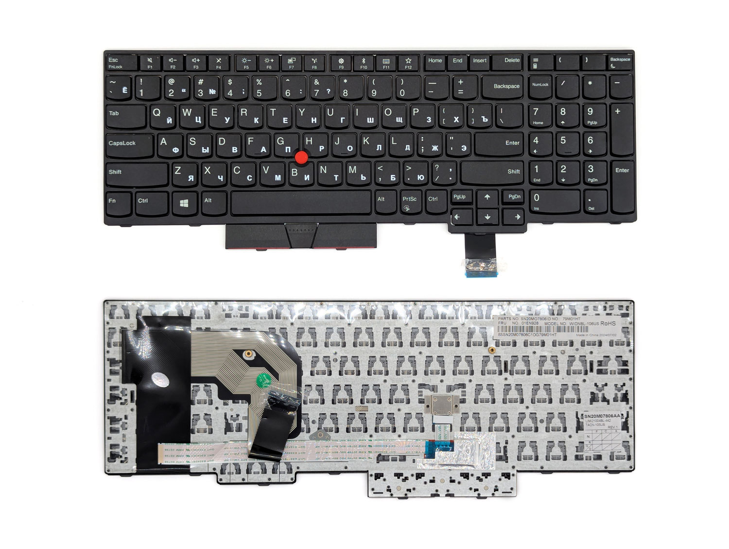Клавиатура для ноутбука Lenovo ThinkPad T570/ P51S/ T580/ P52S, без подсветки, джойстик, RU, черная