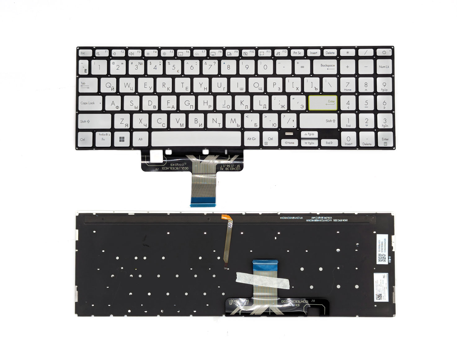 Клавиатура для ноутбука Asus VivoBook 15 X521, без рамки, подсветка, серебристая, RU