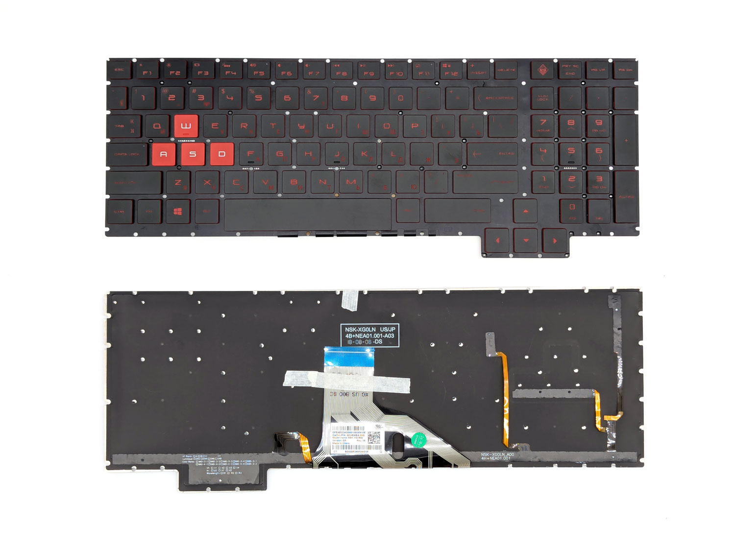 Клавиатура для ноутбука HP Omen 15-ce, RU, подсветка, без рамки, черная