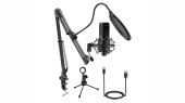 Microphone Fifine F1, 45-18000Hz, 75dB, USB, штатив, POP-фильтр, black