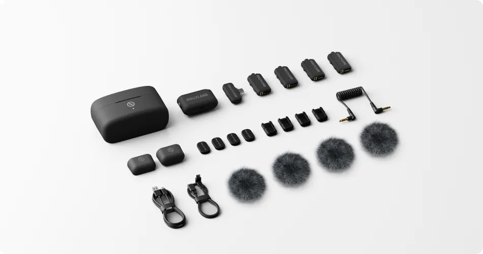 LARK MAX 2 поставляется с различными вариантами, которые идеально подойдут для ваших задач записи , и каждый из них сопровождается аксессуарами, разработанными для каждого аспекта записи. Среди них адаптер USB-C на 3,5 мм для подключения петличного микрофона, меховая ветрозащита для записи на открытом воздухе, адаптер кабеля для безупречного соединения, наушники OWS для мгновенного мониторинга и совместной работы, зарядный футляр [7] для мгновенной зарядки и удобного хранения передатчика и приёмника, а также сумка для переноски, чтобы всё было организовано.