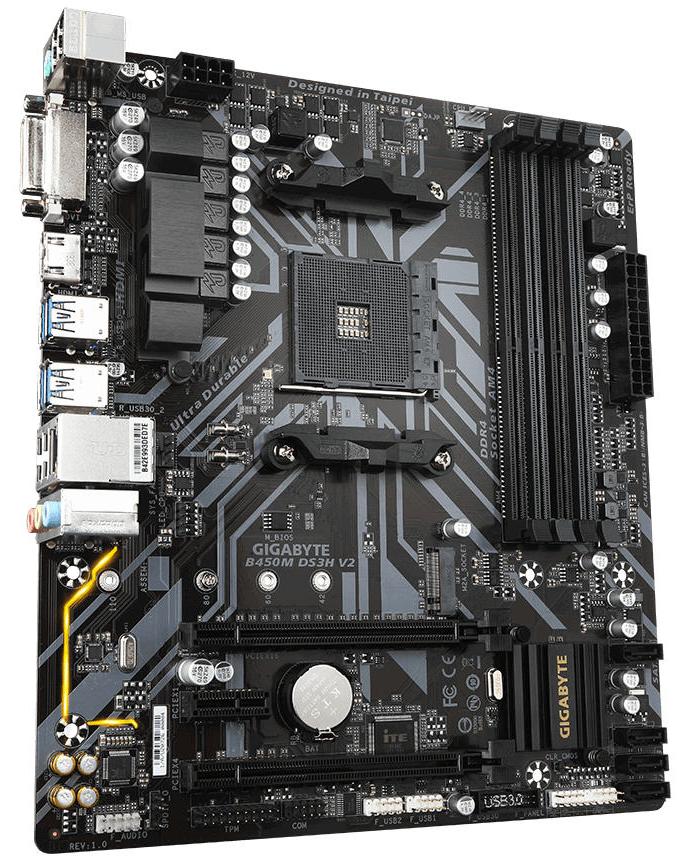 Материнская плата AM4, Gigabyte, B450M DS3H V2
