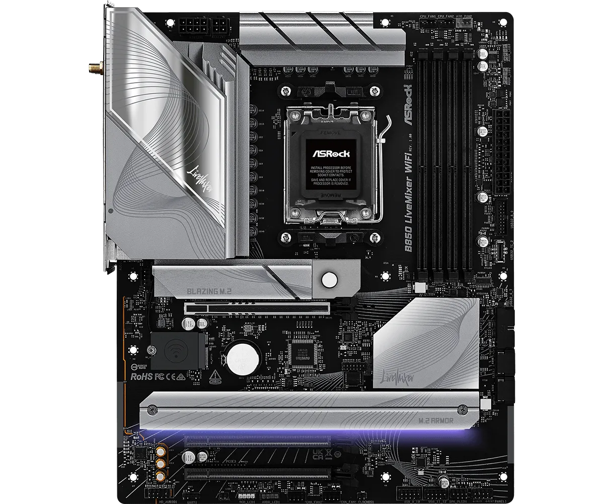 Материнская плата ASRock B850 LiveMixer WiFi [AM5, AMD B850, 4xDDR 5, 3xM.2, 3xPCI-E x16, Standard-ATX]