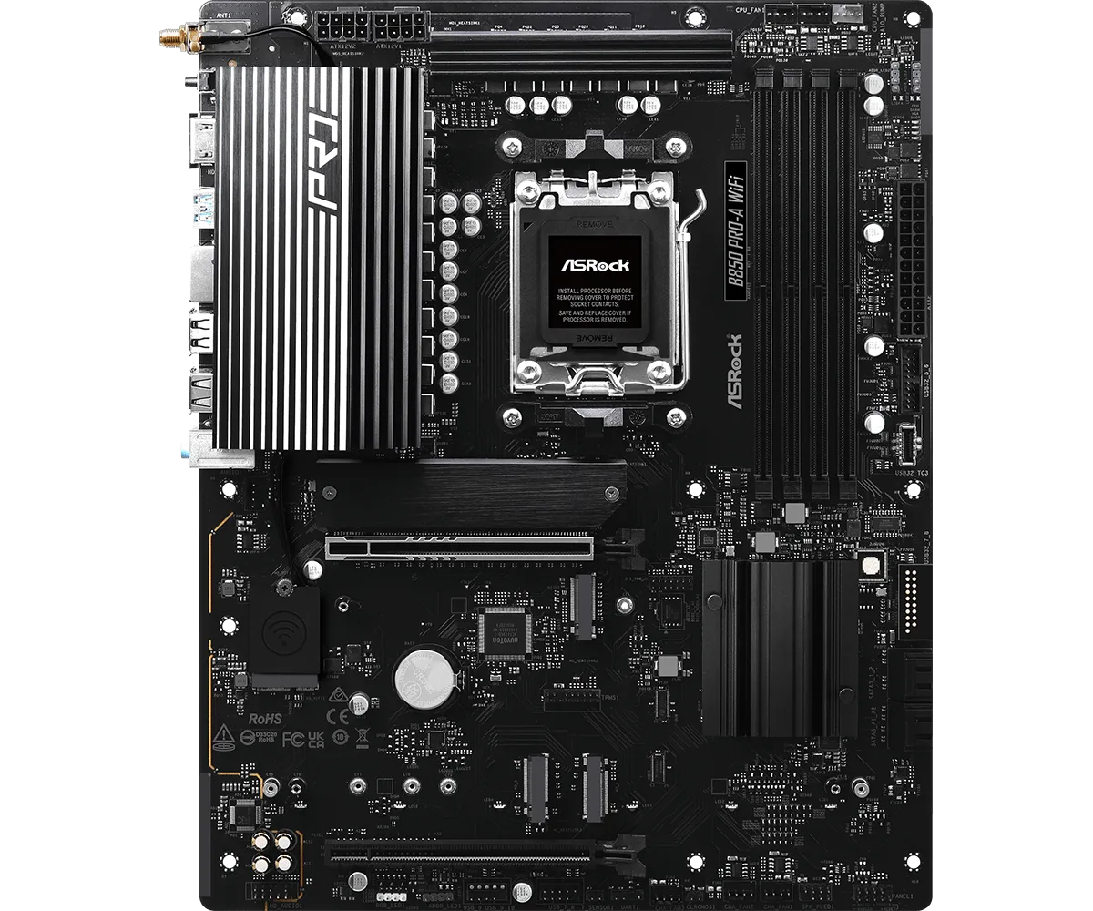 Материнская плата ASRock B850 Pro-A WiFi [AM5, AMD B850, 4xDDR 5, 3xM.2, 2xPCI-E x16, Standard-ATX]