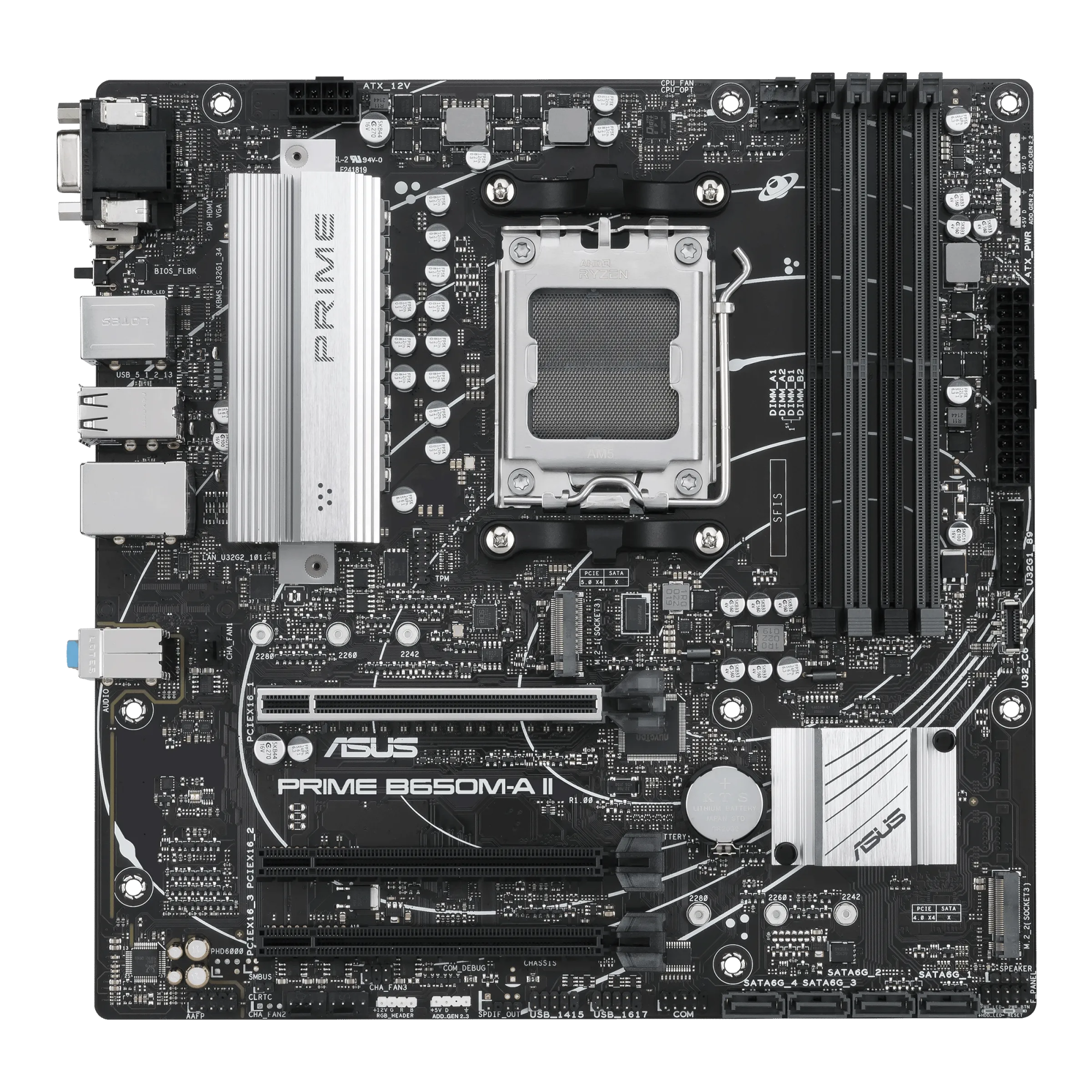 PRIME B650M-A II предлагает в общей сложности два слота M.2, первый из которых поддерживает скорость передачи данных до 128 Гбит/с через PCIe 5.0, что обеспечивает более быструю загрузку и время загрузки приложений с ОС или дисков приложений.