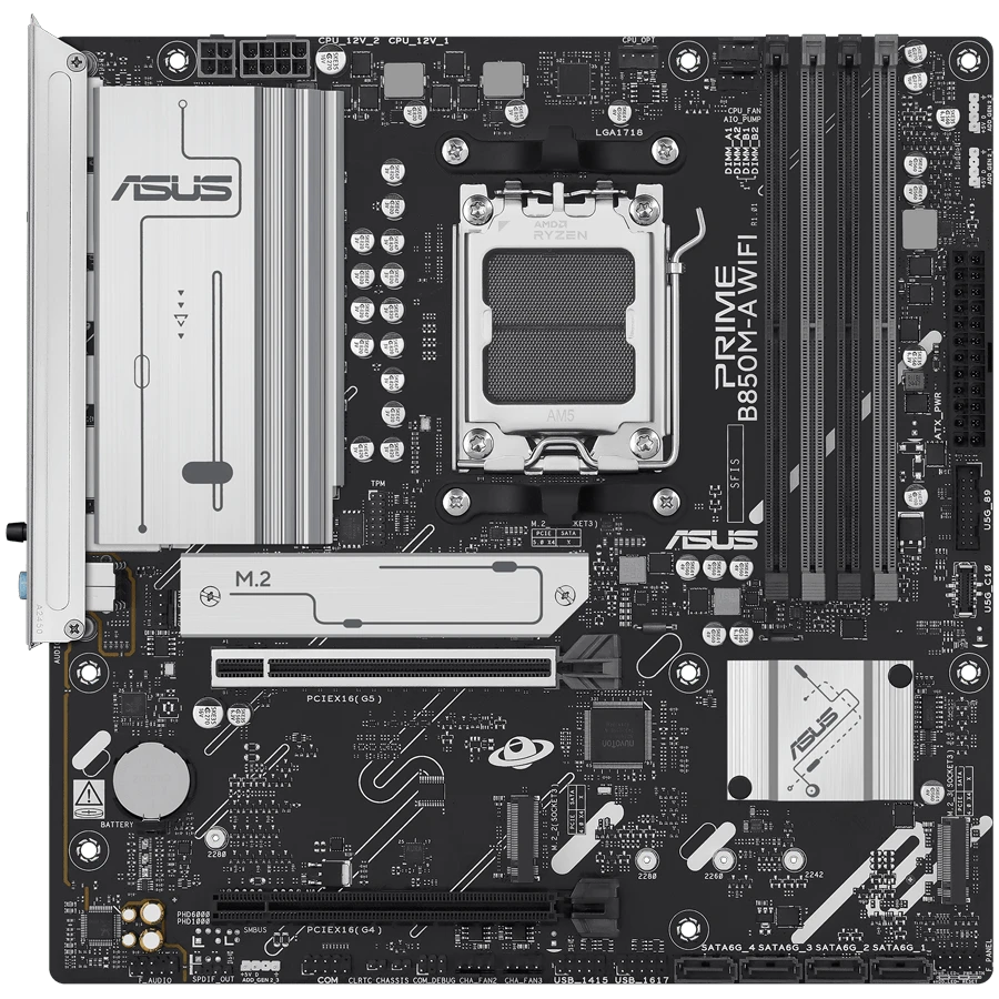 Материнская плата Asus PRIME B850M-A WIFI [AM5, AMD B850, 4xDDR 5, 3xM.2, 2xPCI-E x16, Micro-ATX]