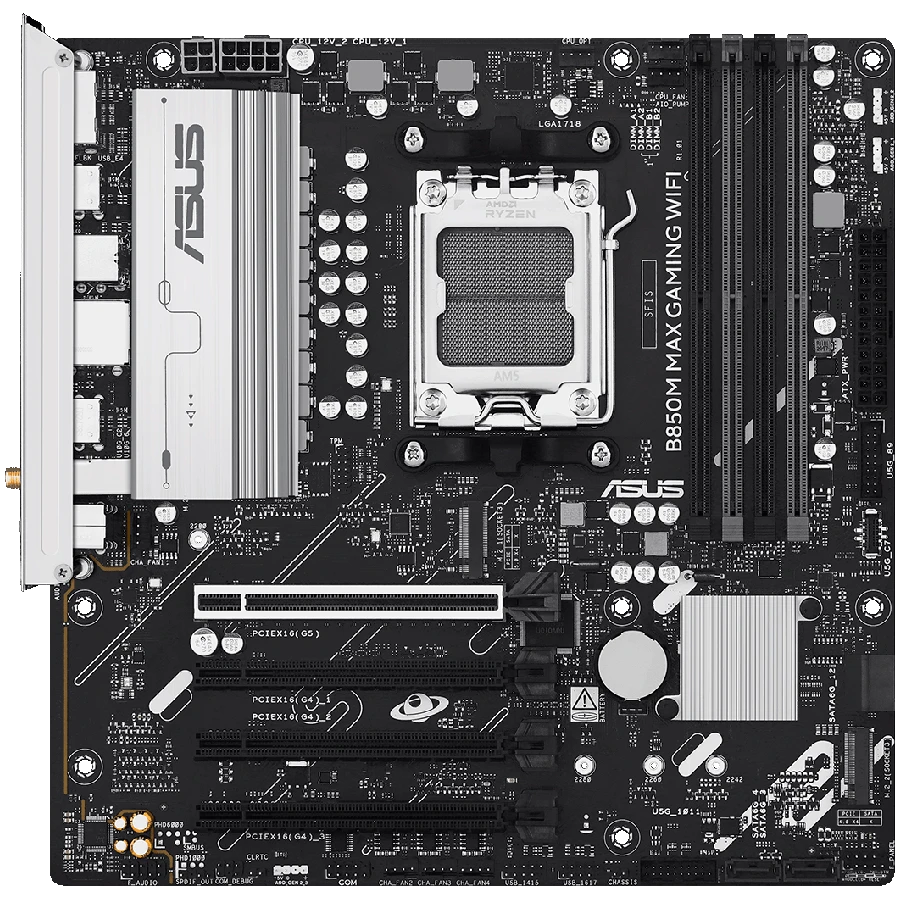 Материнская плата Asus B850M MAX GAMING WIFI [AM5, AMD B850, 4xDDR 5, 3xM.2, 4xPCI-E x16, Micro-ATX]