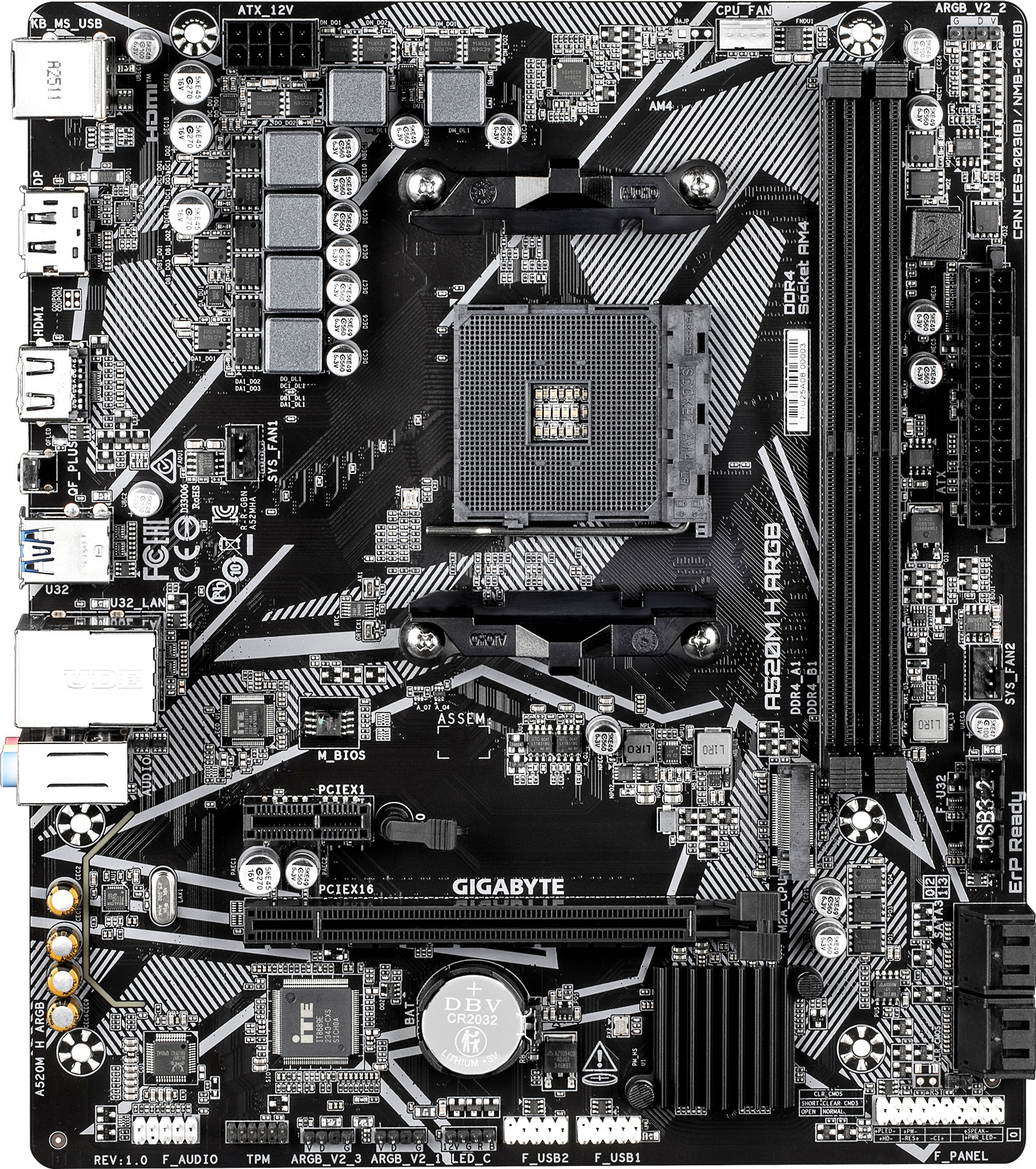Материнская плата Gigabyte A520M H ARGB [AM4, AMD A520, 2xDDR 4, 1xM.2, 1xPCI-E x16, Micro-ATX]