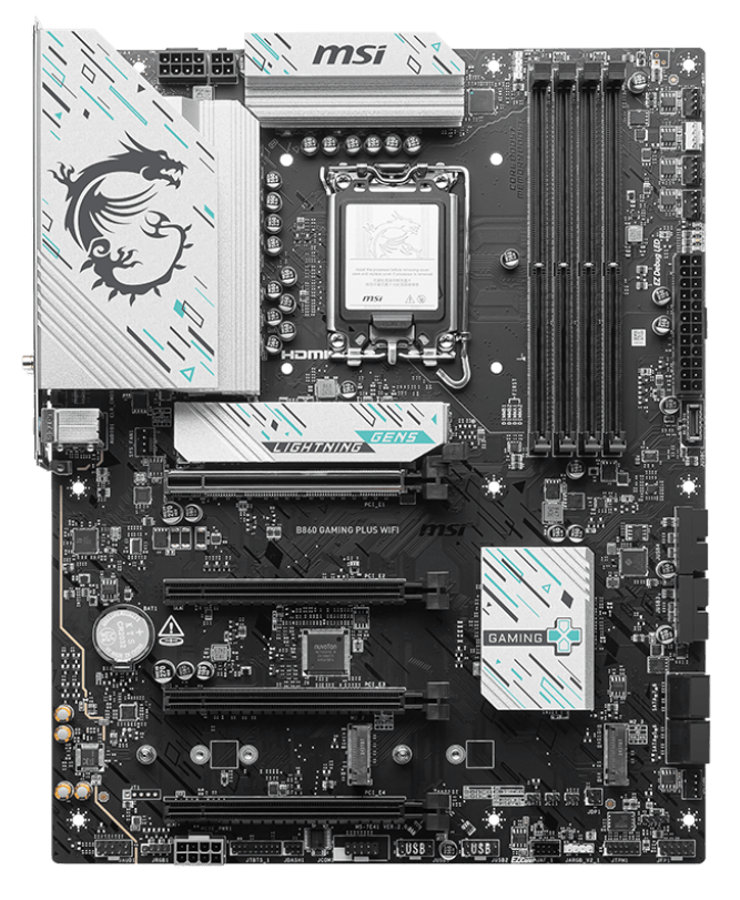 Материнская плата MSI B860 GAMING PLUS WIFI [LGA 1851, Intel B860, 4xDDR 5, 3xM.2, 4xPCI-E x16, Standard-ATX]