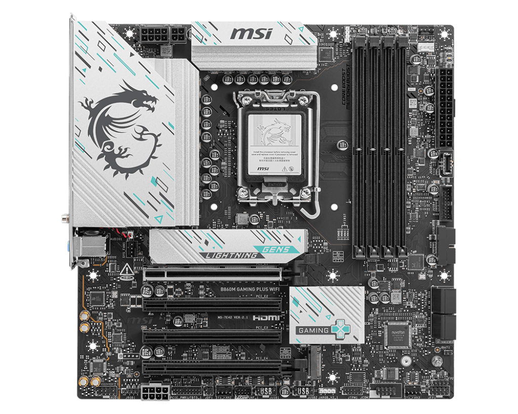 Материнская плата MSI B860M GAMING PLUS WIFI [LGA 1851, Intel B860, 4xDDR 5, 3xM.2, 4xPCI-E x16, Micro-ATX]