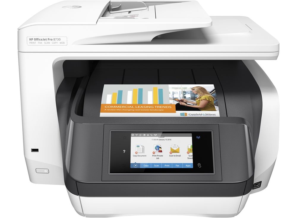 МФУ HP OfficeJet Pro 8730 (D9L20A#A80) [A4, струйное, цветное, 1200x1200 DPI, дуплекс, АПД, Wi-Fi, Ethernet (RJ-45), USB, FAX (RJ-11)]