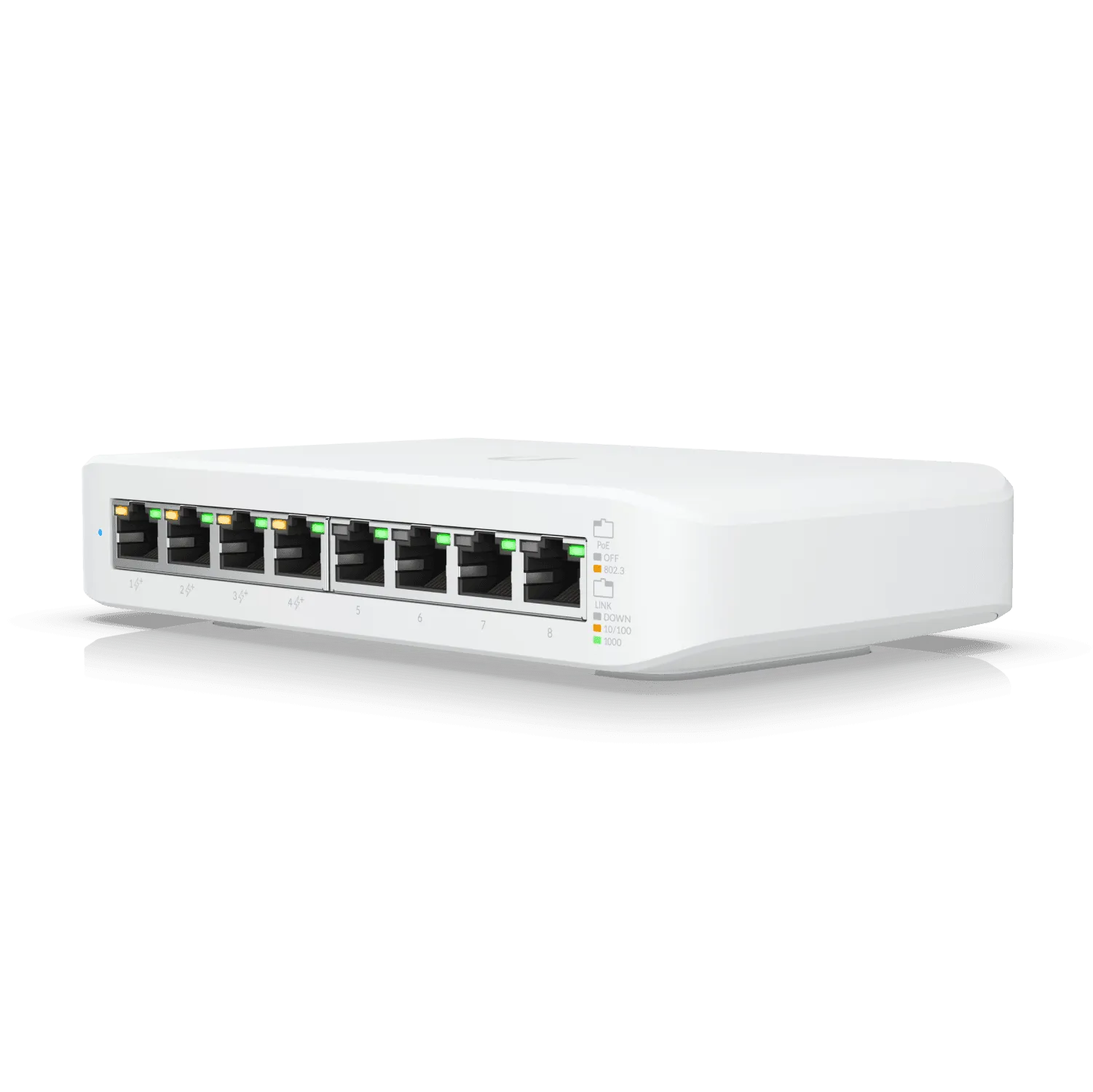 Ubiquiti USW-Lite-8-POE — компактный 8-портовый коммутатор уровня 2 с поддержкой PoE, идеально подходящий для небольших сетей и домашних инсталляций.
