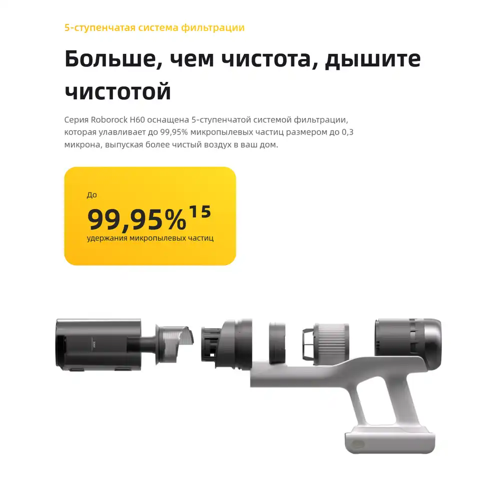 Беспроводной вертикальный пылесос Roborock H60 Pro Белый