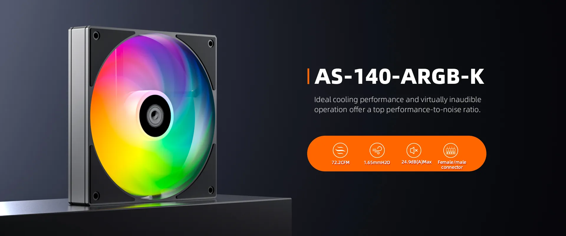 Вентилятор для корпуса ID-Cooling AS-140-ARGB-K [140 мм, 1800 об/мин, 72.2 CFM, 24.9 dBA, PWM]
