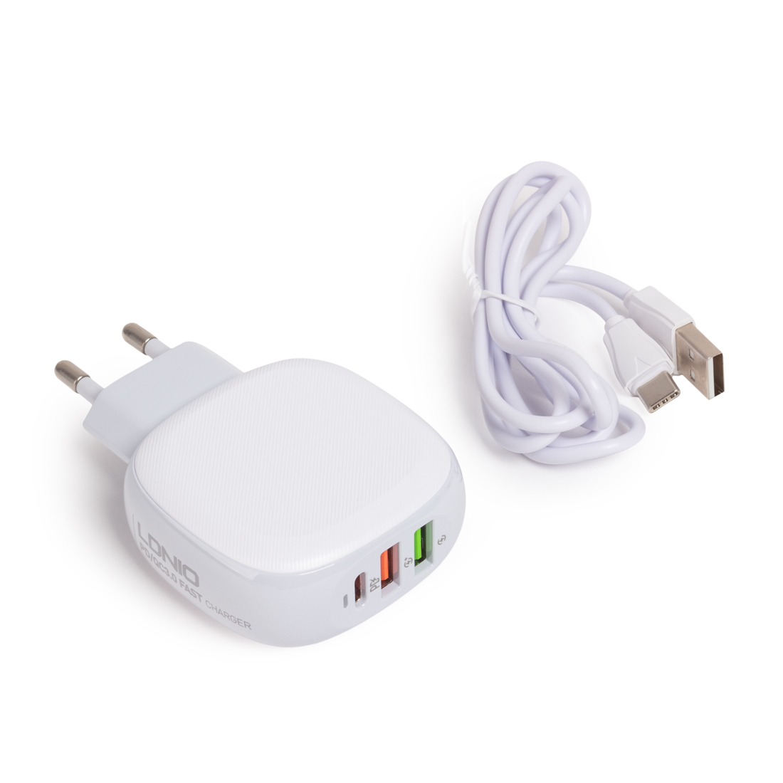 Универсальное зарядное устройство LDNIO A3510Q 2*USB A/1*USB Type C Белый