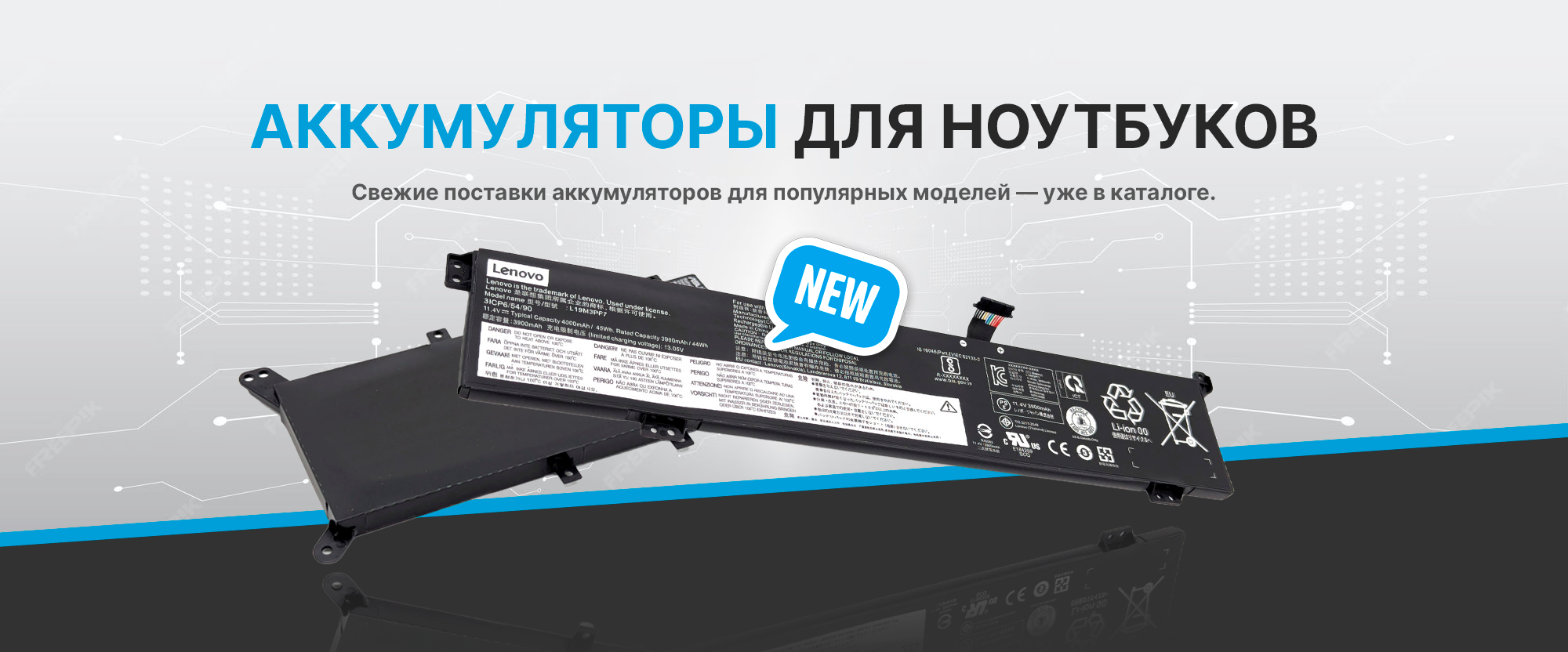 Все новые поступления уже доступны в разделе «Аккумуляторы для ноутбуков» на нашем сайте. Для быстрого подбора можно воспользоваться поиском по сайту — достаточно указать модель ноутбука или партномер аккумулятора.